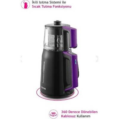 Sürahi ve demlik kısmı kablosuz olarak kullanılabilir. Elektrik ihtiyacını karşılayan taban kısmı diğer parçalardan bağımsızdır.