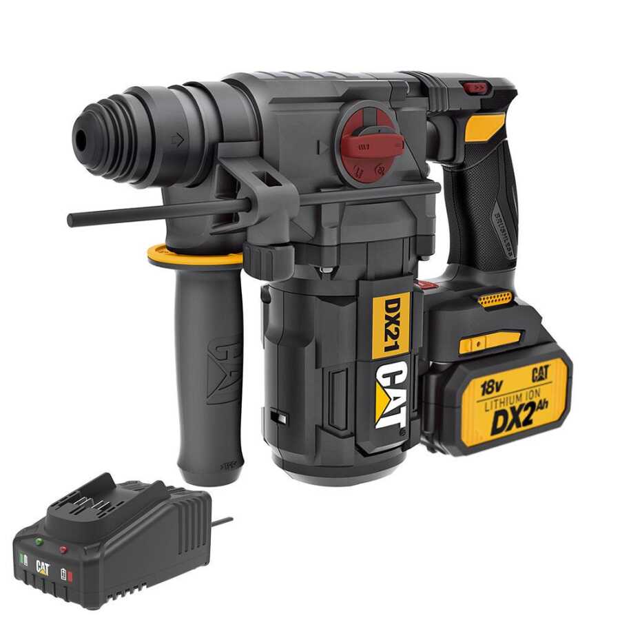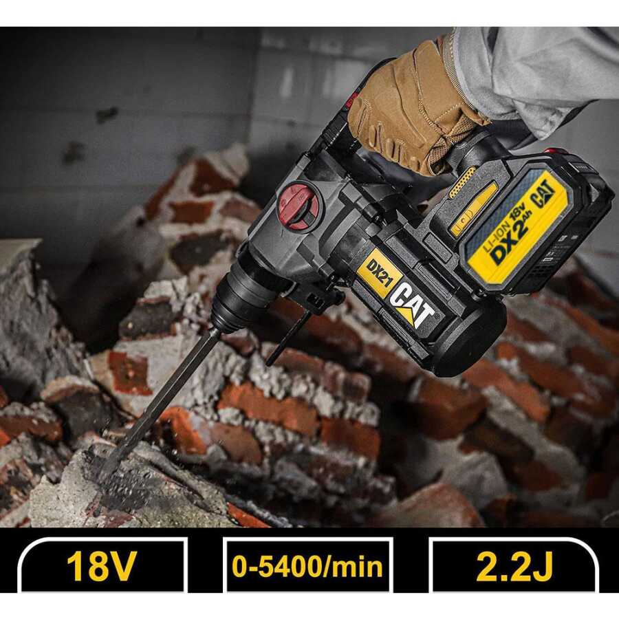 · CAT DX21BC 18Volt 2.0Ah 2.2J Li-ion Tek Akülü Şarjlı Kömürsüz Profesyonel SDS-Plus Pnömatik Kırıcı/Delici