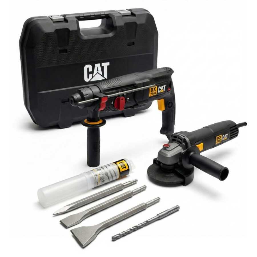 • CAT DX2140 800Watt 3.0J Profesyonel Kırıcı Delici + CAT DX3090 720Watt 125mm Profesyonel Avuç Taşlama + CAT DA03903 3 Parça Kırıcı Uç Setinden oluşan kombo settir.