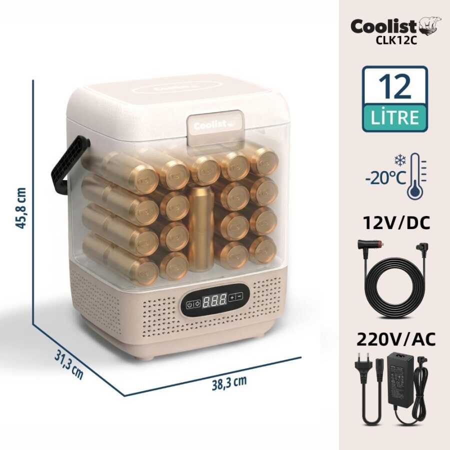 • Coolist CLK12C 12/24Volt/ 220Volt 12 Litre Taşınabilir Kompresörlü Oto Buzdolabı