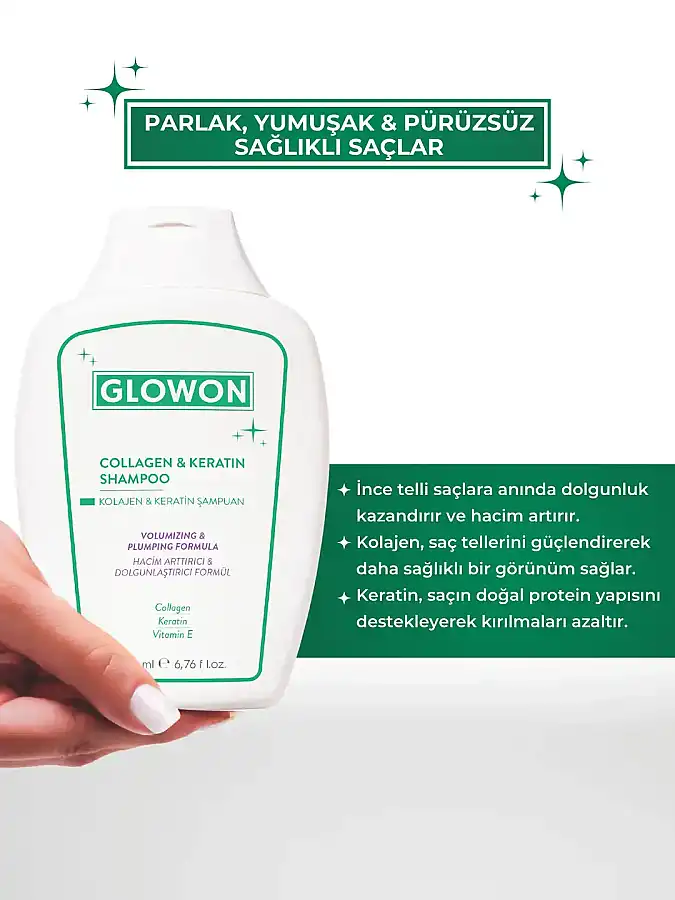 GLOWON Kolajen ve Keratin İçeren Hacim Artırıcı ve Güçlendirici Şampuan 300ml
