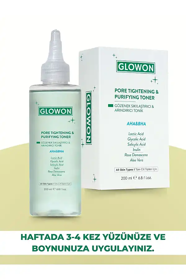 GLOWON Vegan Arındırıcı Tonik | İçerikli AHA BHA Gözenek Sıkılaştırıcı ve Siyah Nokta Karşıtı 200ml