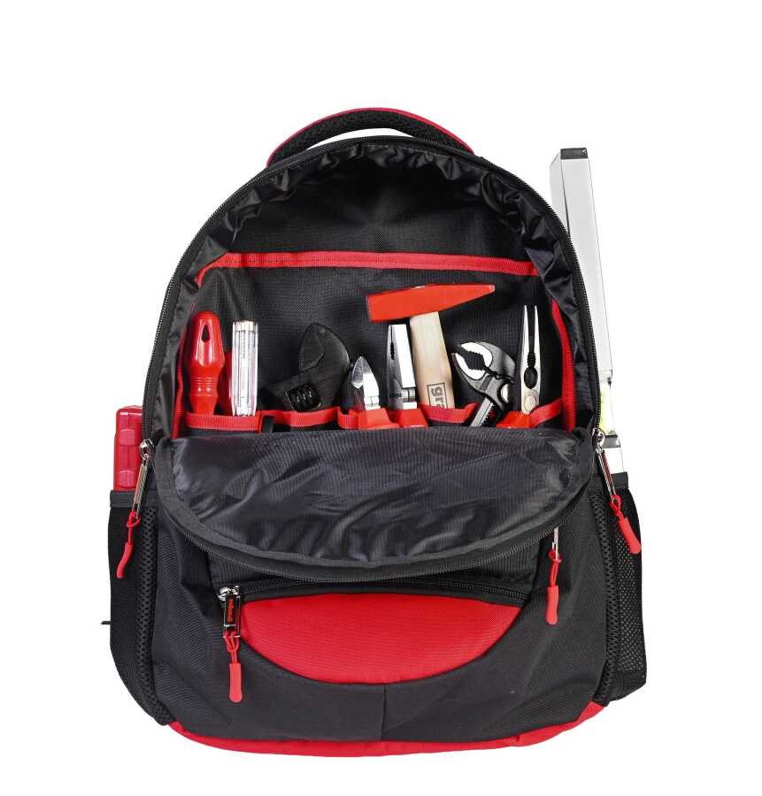 Arka cepte hem sabit 3 bölme hem de çok gözlü düzenleyici sayesinde tornavida ve anahtarlar muhafaza edilebilir ve düşmesi engellenir.