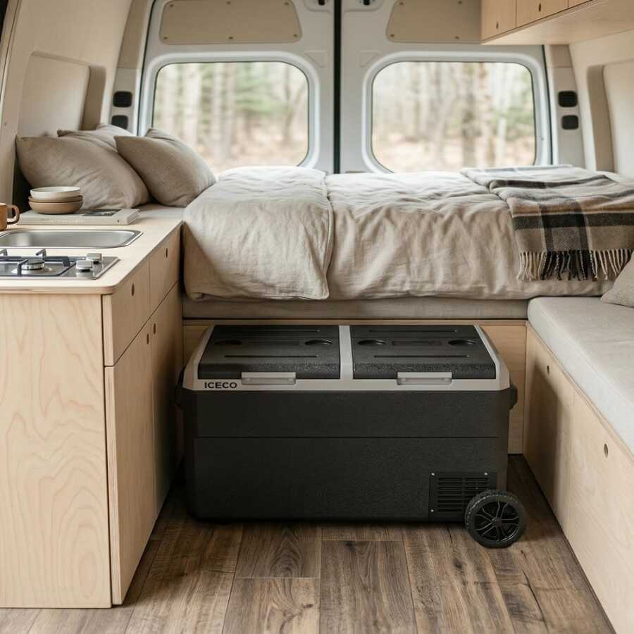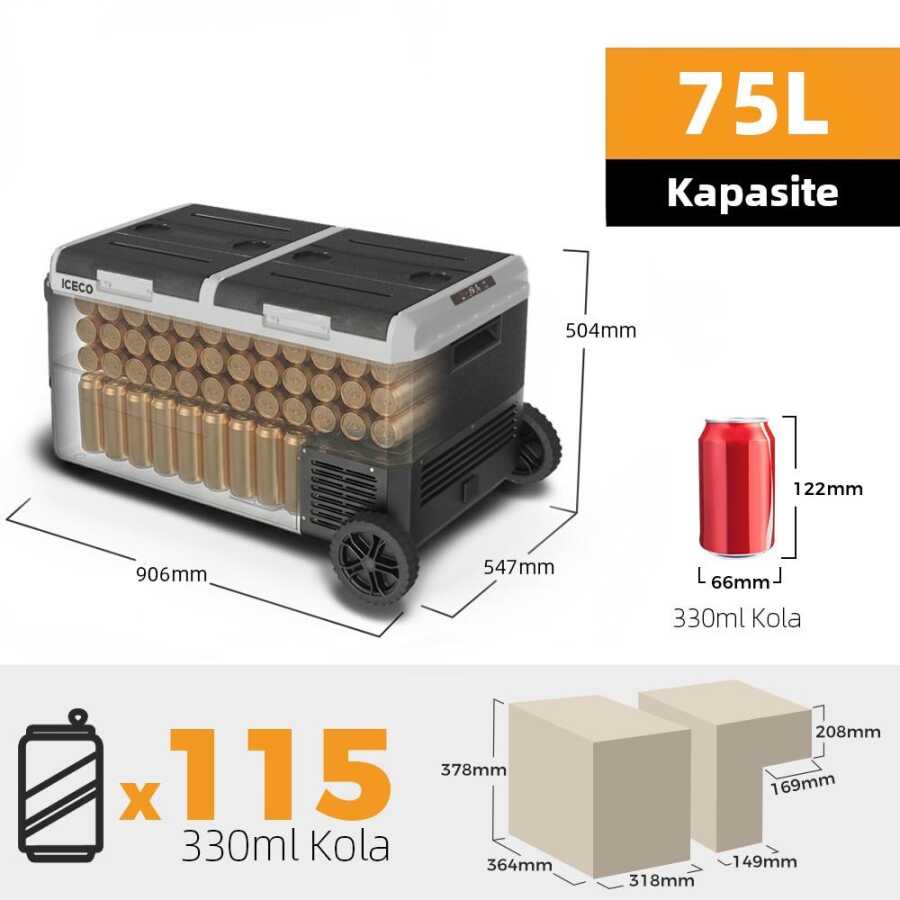 • ICECO MCD75D 12/24Volt 75 Litre Kompresörlü Çift Bölmeli Tekerlekli Outdoor Oto Buzdolabı/Dondurucu