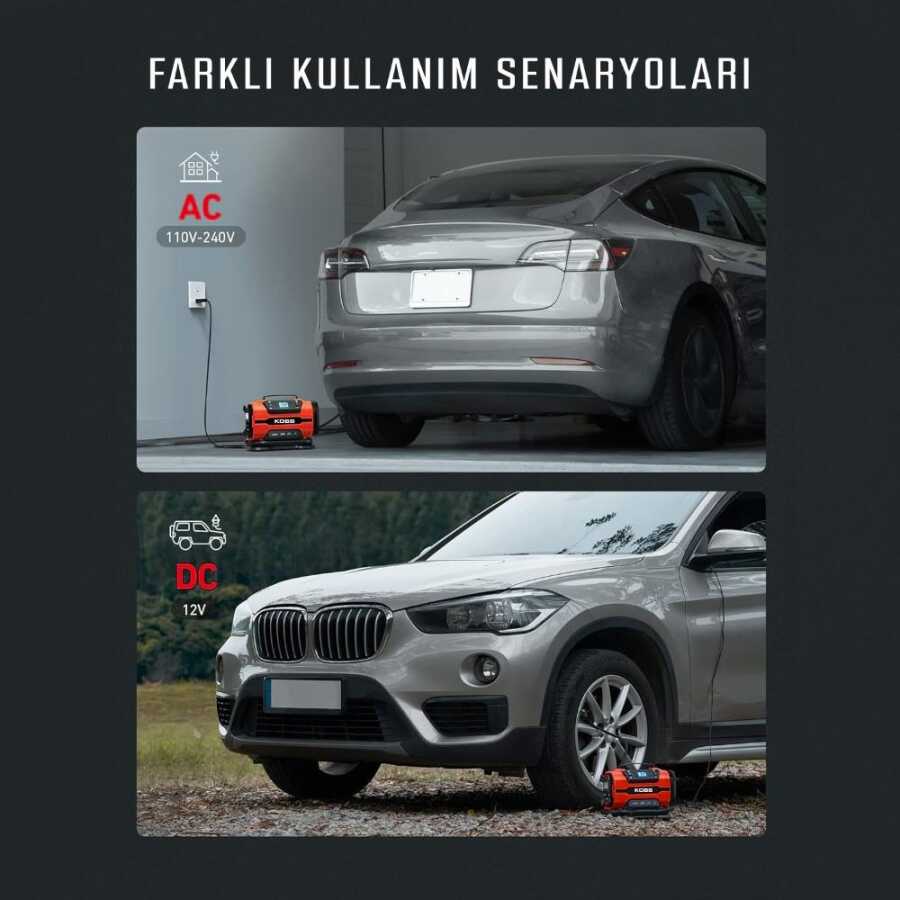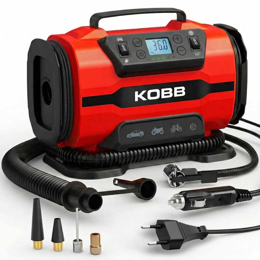 • KOBB KB301 12Volt 220Volt 150 PSI Ayarlanabilir Dijital Basınç Göstergeli Lastik ve Yatak Şişirme Pompası