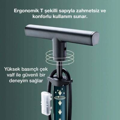• Güçlü 87 PSI / 6 Bar şişirme gücü ile, bisiklet ve motosiklet lastikleri, toplar, balon, lastik bot vb. şişirmek için uygundur.