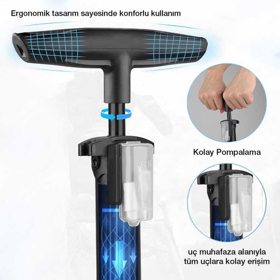 • Güçlü 87 PSI / 6 Bar şişirme gücü ile, bisiklet ve motosiklet lastikleri, toplar, balon, lastik bot vb. şişirmek için uygundur.