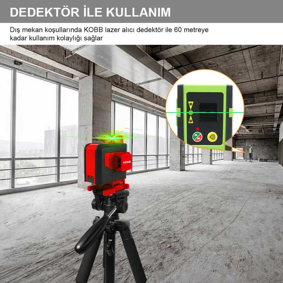 ·         Ayrıca alınabilen KOBB KBL6RG Dedektör ile açık havada 40m mesafeye kadar, iç mekanlarda 60m mesafeye kadar lazer ışınlarının görünmediği yerde lazer hattını tespit etme imkânı sağlar,