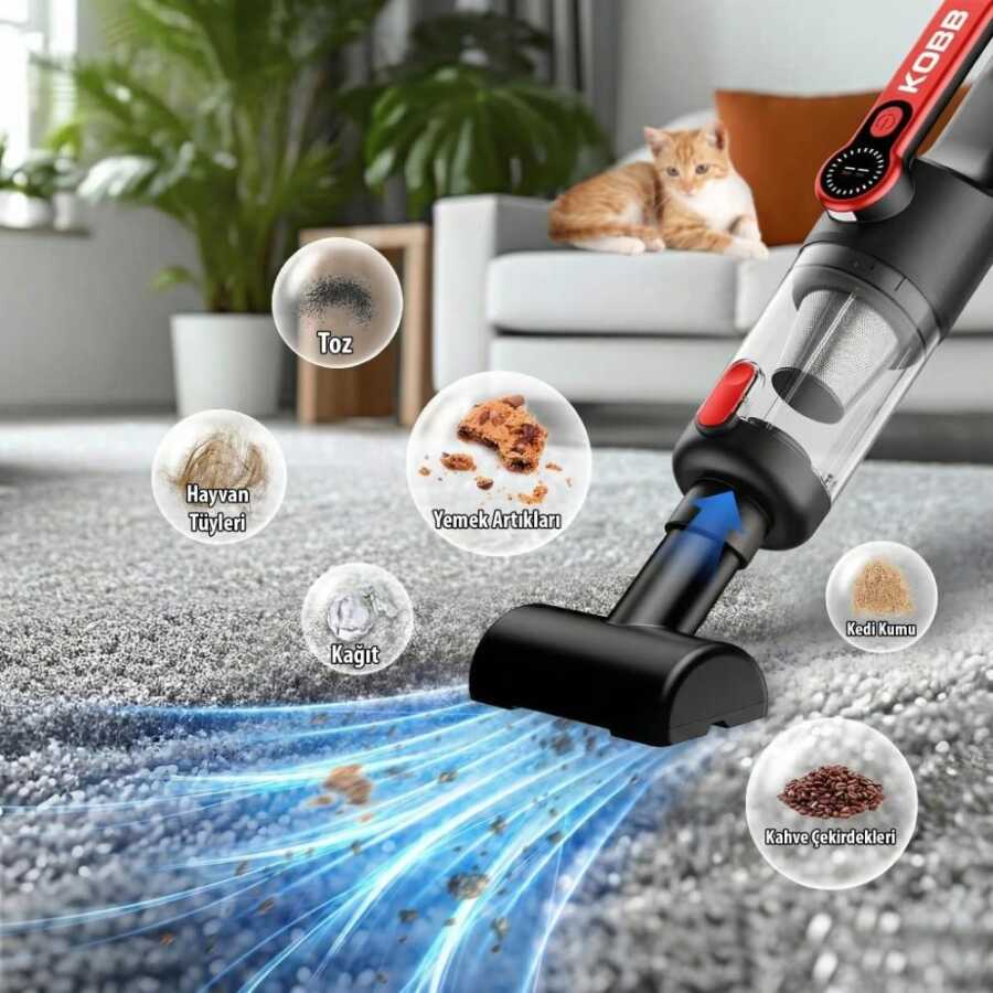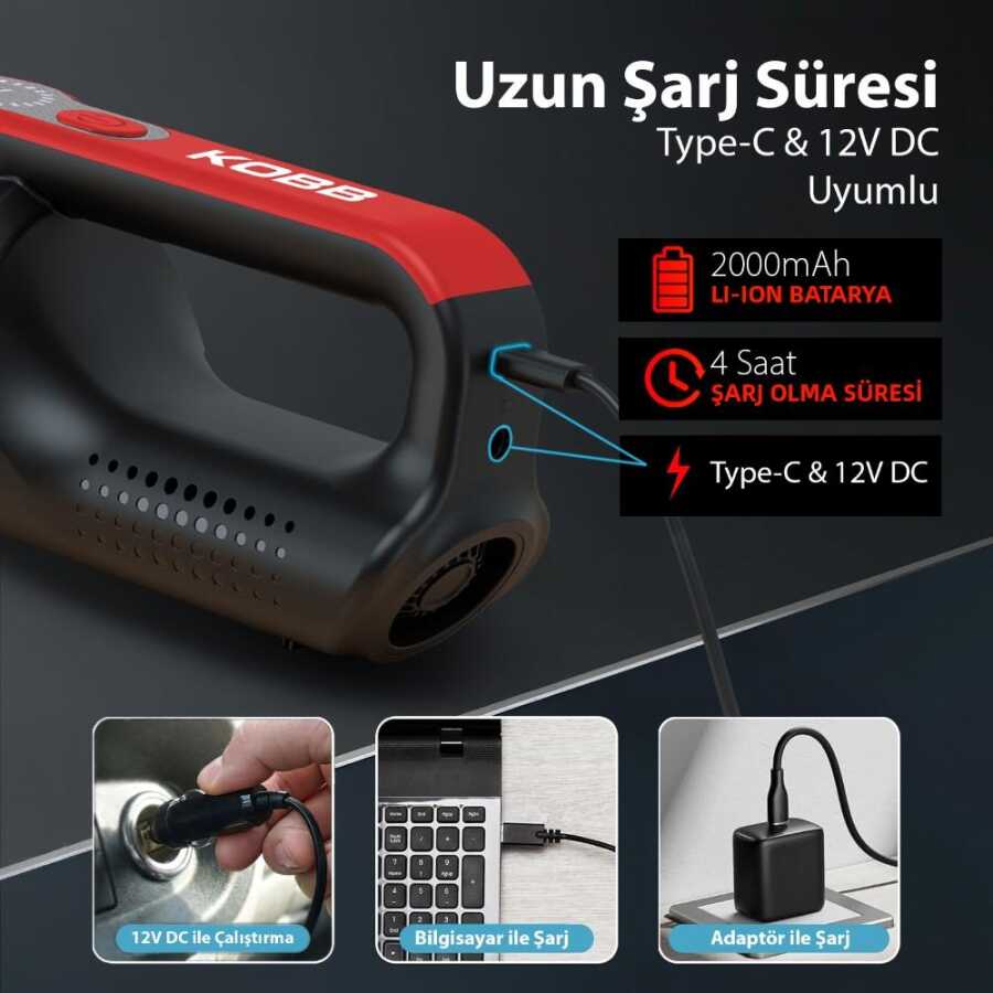 KOBB KBV20 12Volt/ Li-ion Şarjlı Kömürsüz Motor Hibrit Araç Süpürgesi + 8 Parça Aksesuar Seti + Taşıma Çantası