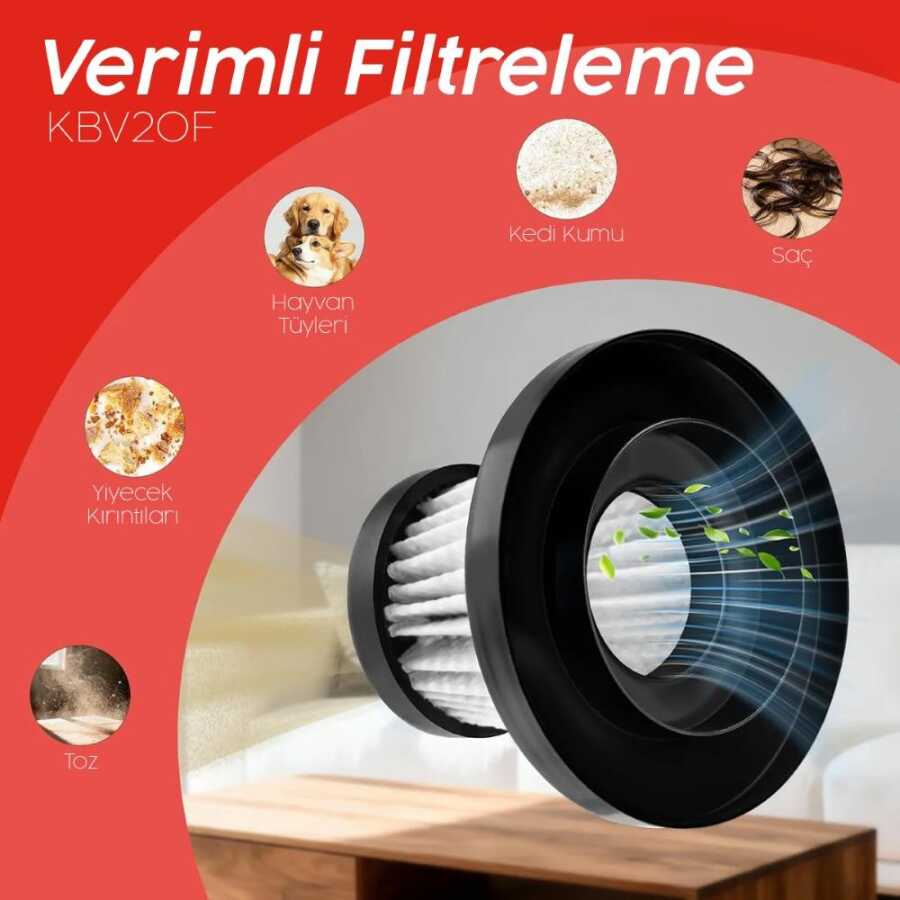 • KOBB KBV20F 12V/Şarjlı Hibrit Araç Süpürgesi İçin Yedek HEPA+Çelik Filtre