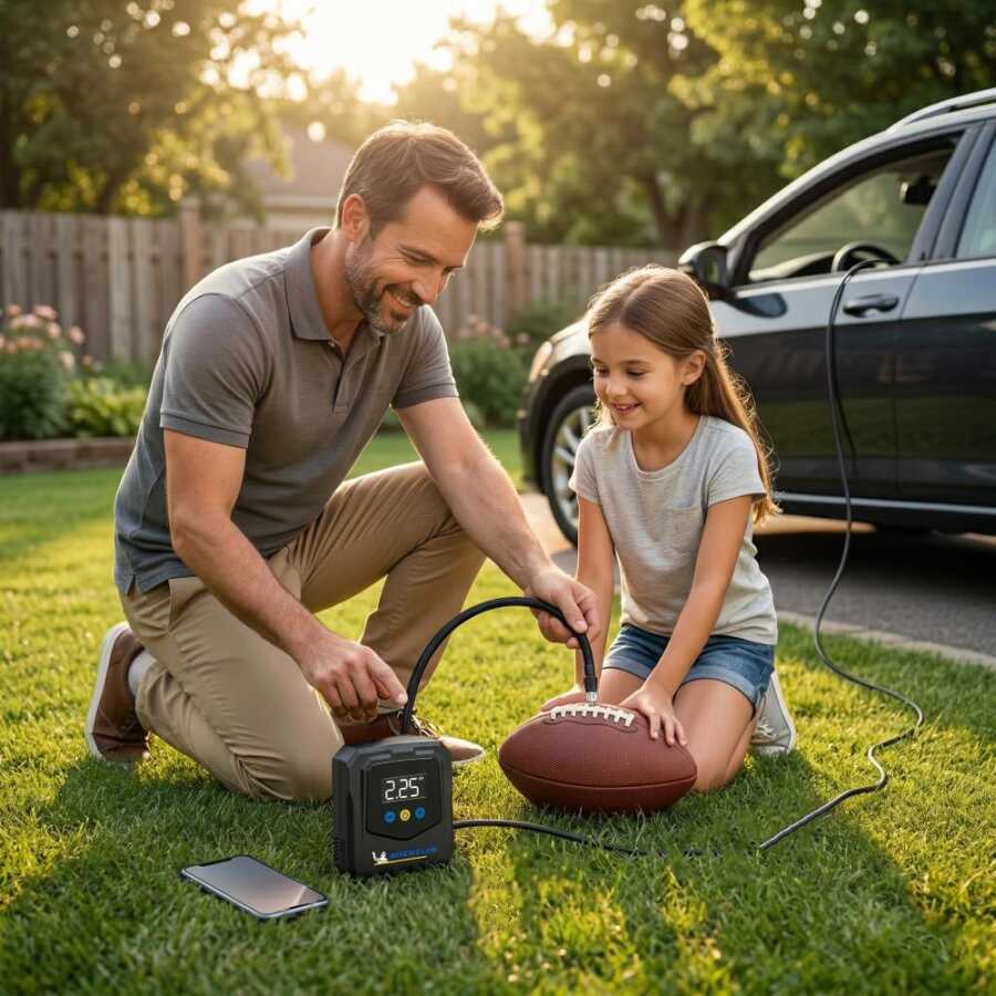 • 12Volt araç çakmak girişi ile kamp, dağcılık, sahil vb. alanlarda şişme bot, deniz yatağı, deniz topu, bisiklet, şişme yatak vb. birçok ürününüzü rahatlıkla şişirme imkânı.