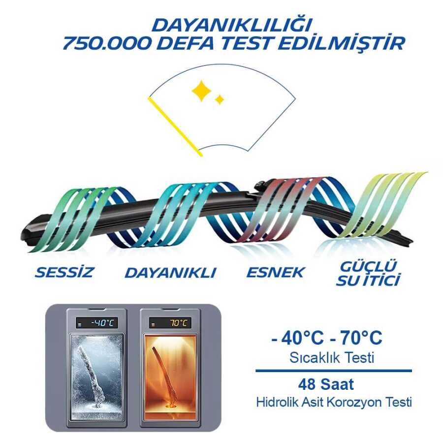 · Dura-Glide™ özel formülle kaplanmış tamamen doğal %100 kauçuk silecek lastiği sayesinde sessiz ve uzun ömürlü silme performansı sağlar,