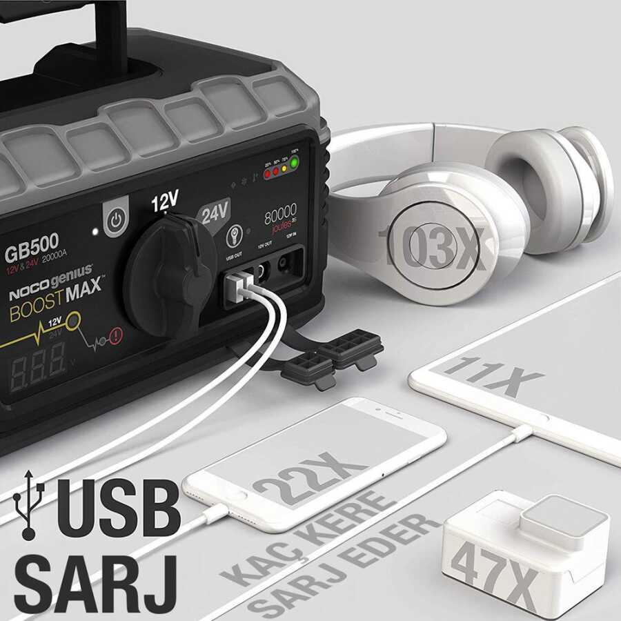 · NOCO Genius GB500 12V/24V 6250Amp Ultrasafe Lityum Akü Takviye + Powerbank + Led Lamba
