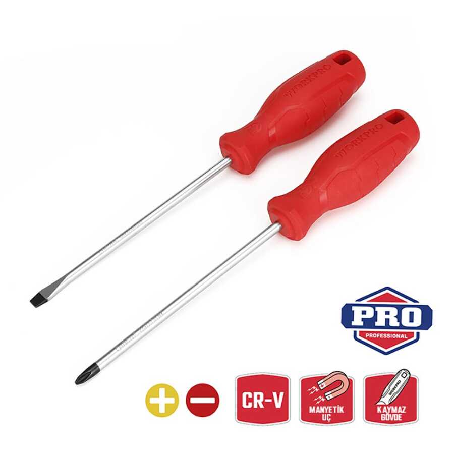 • WORKPRO WP200500 2 Parça Yıldız/Düz CR-V Manyetik Profesyonel Tornavida Seti