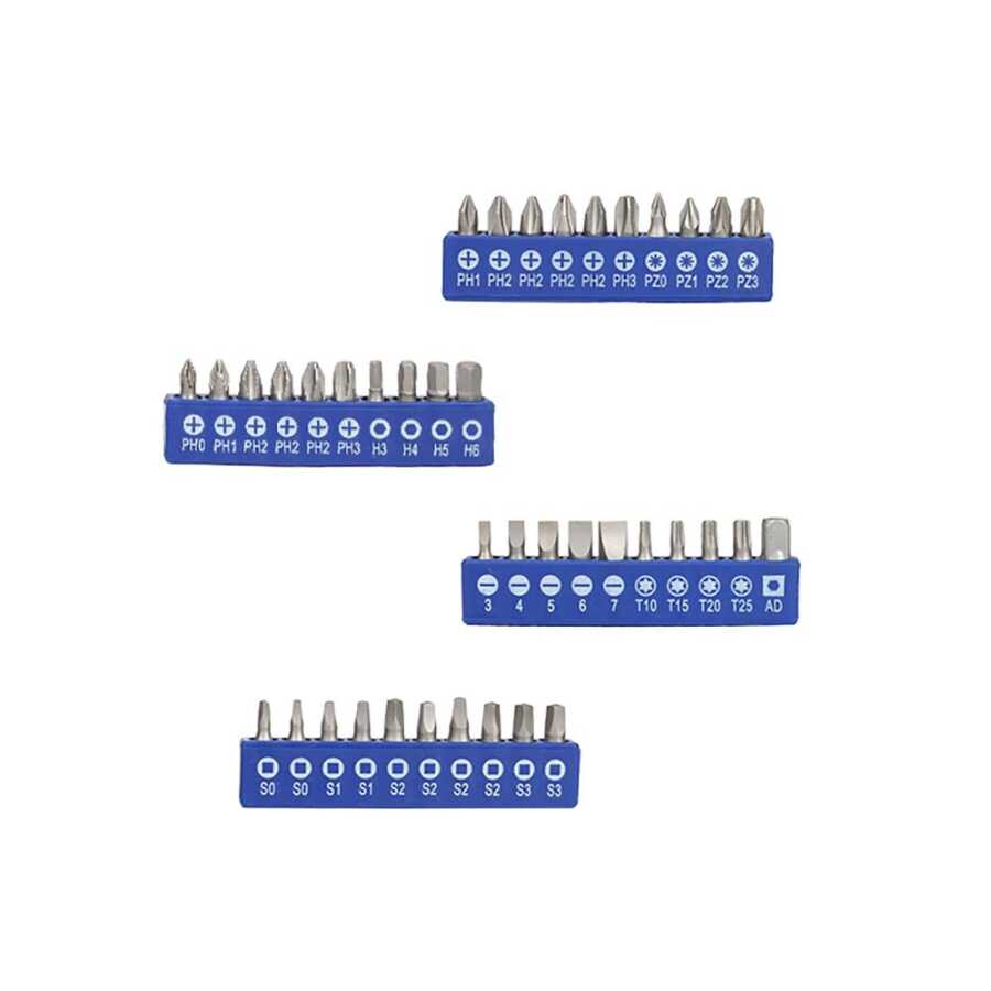 • 40 Adet = PH0 / 2xPH1 / 7xPH2 / 2xPH3 / H3 / H4 / H5 / H6 / PZ0 / PZ1 / PZ2 / PZ3 / SL3 / SL4 / SL5 / SL6 / SL7 / T10 / T15 / T20 / T25 / 2xS0 / 2xS1 / 4xS2 / 2xS3