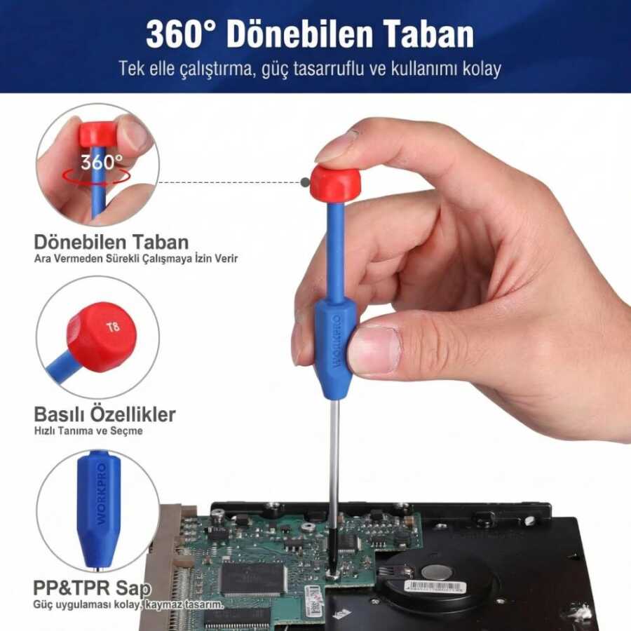 • WORKPRO WP200530 CR-V 10 Parça Profesyonel Manyetik Hassas Tornavida Seti