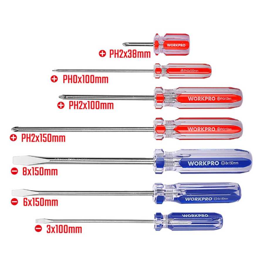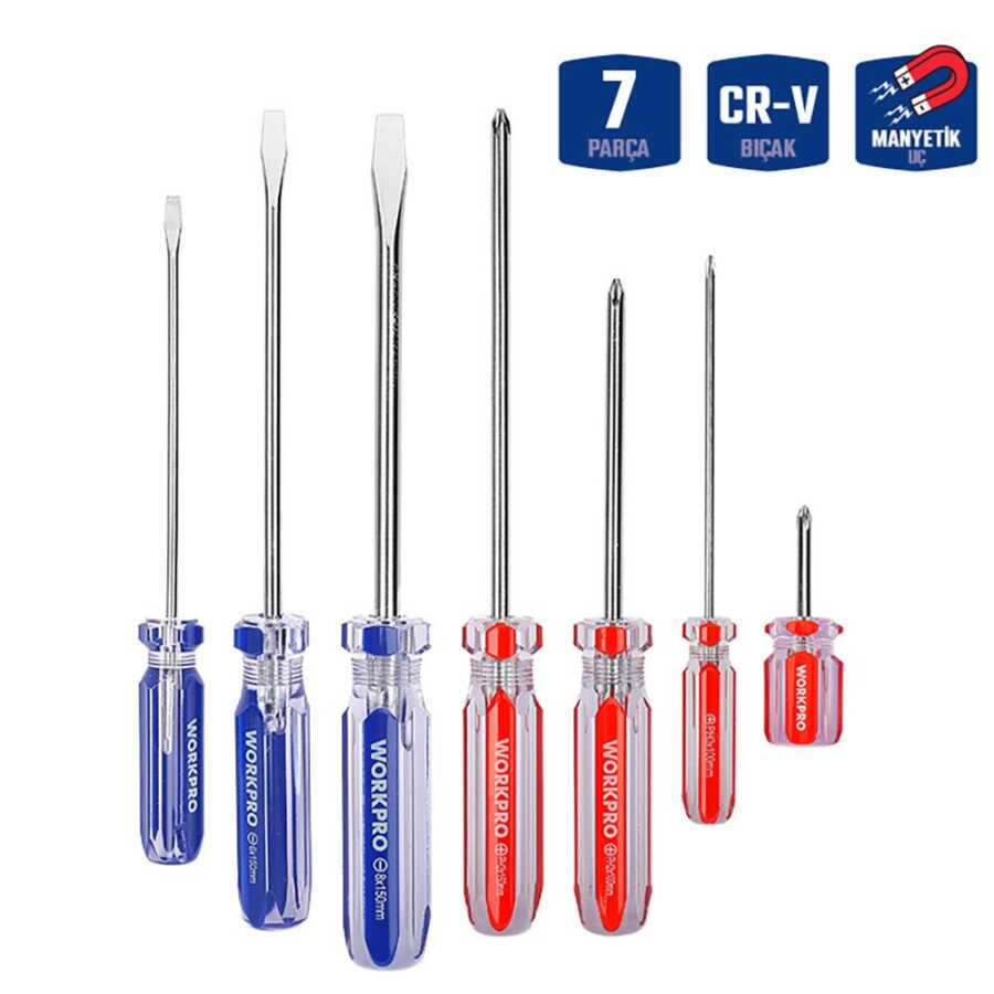 • WORKPRO WP200533 7 Parça CR-V Manyetik Profesyonel Tornavida Seti