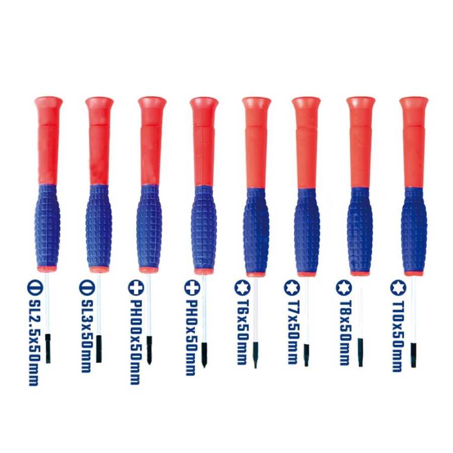 • 2.5x50mm / 3x50mm Saatçi Düz Tornavida / PH00x50, PH0x50 Saatçi Yıldız Tornavida / T6x50mm, T7x50mm, T8x50mm, T10x50mm Torx Tornavida Takımları