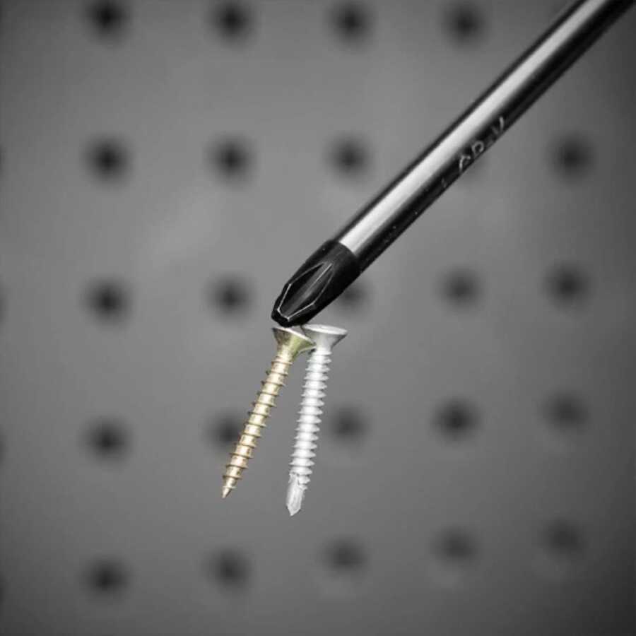 • Geliştirilmiş güçlü, siyah manyetik uca sahip tornavida, yüksek dayanıklılık ve rahat kavrama sağlar.