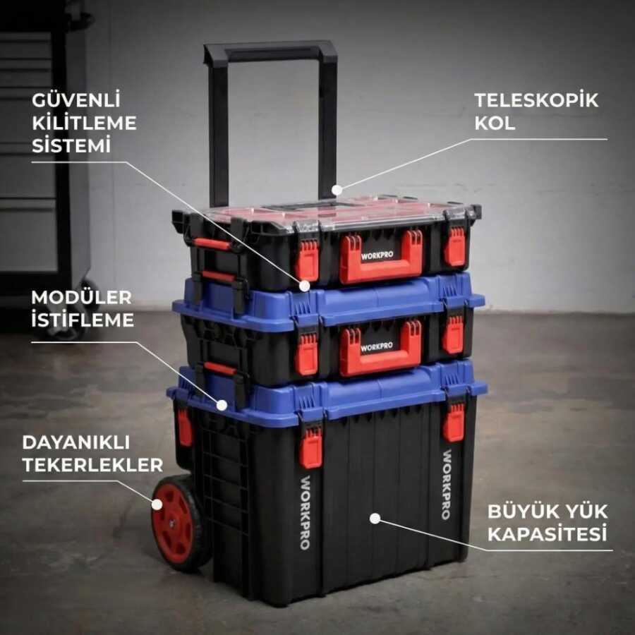 WORKPRO WP283032 54Lt 56x44,2x50cm Tekerlekli Kilitli Profesyonel Takım Çantası