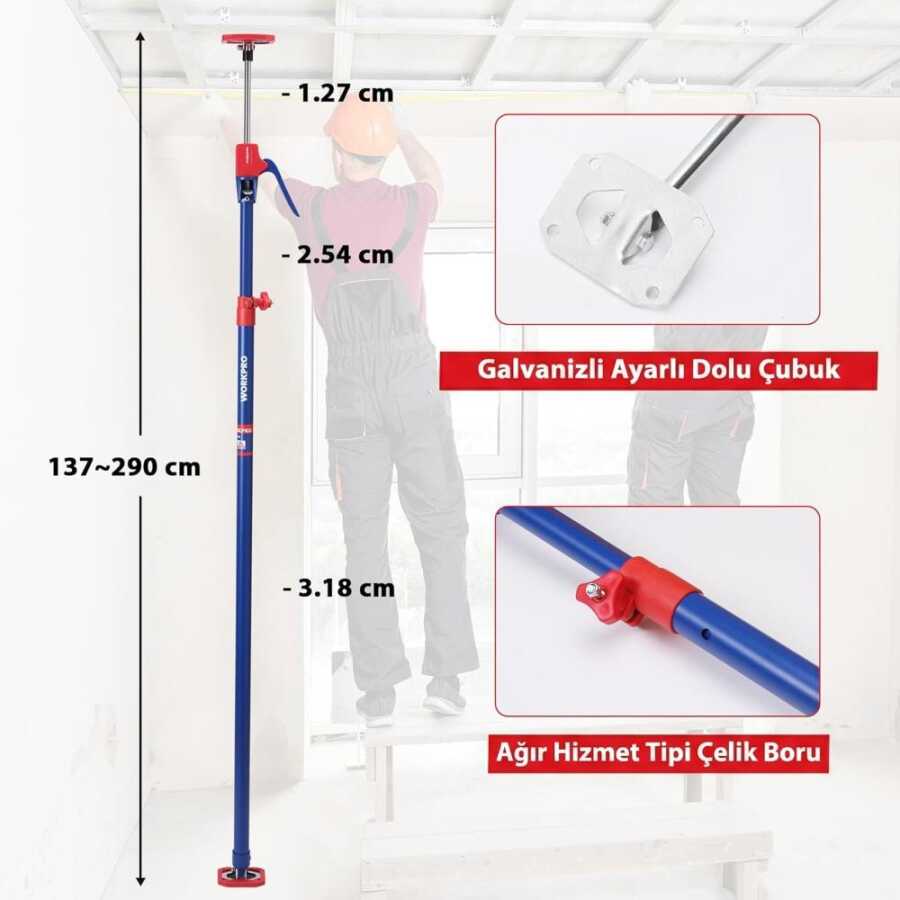 WORKPRO WP289034 137-290cm 70Kg Teleskobik Mandallı Ayarlanabilir 2’Li Çelik Destek Direği + Taşıma Çantası