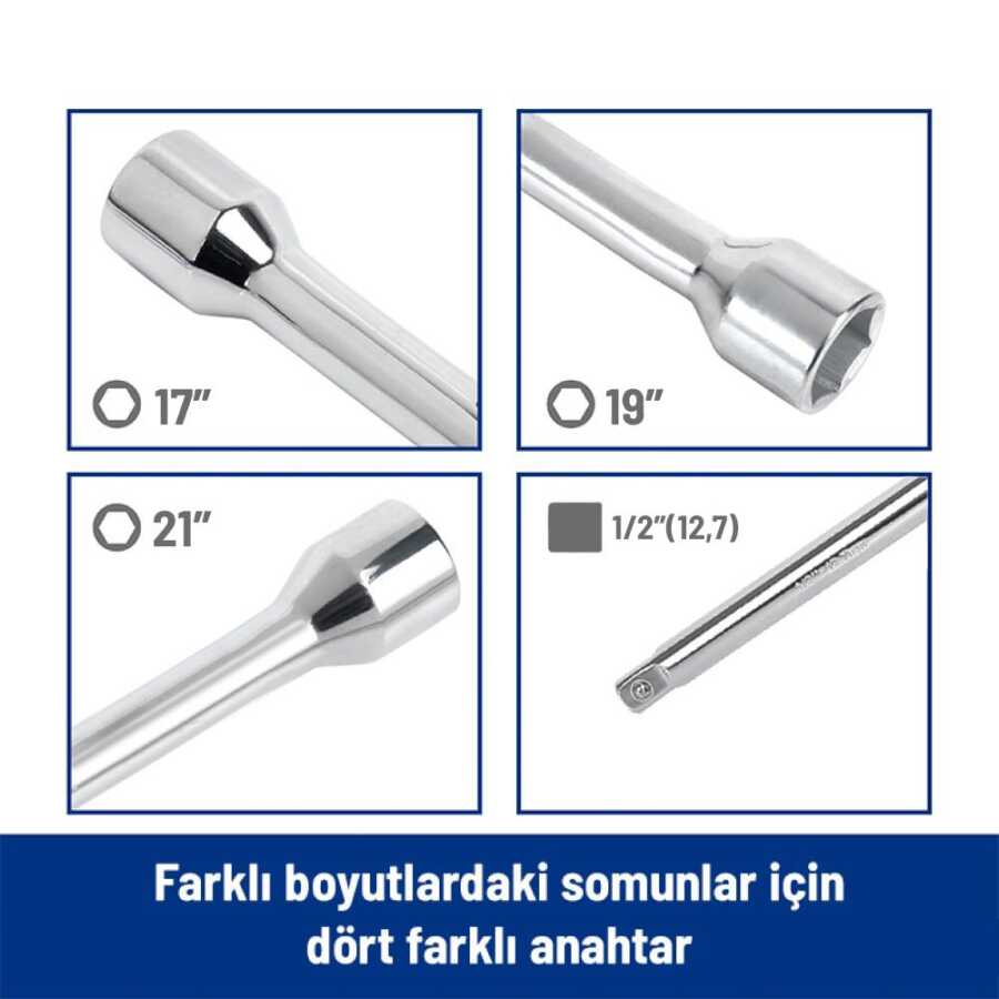 • 17 – 19 – 21 – 1/2'’ Bijon veya Somunlarda Kullanıma uygundur.
