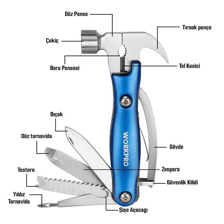 • WORKPRO WP382018 12 IN 1 Çok Fonksiyonlu Profesyonel Çekiçli Pense Seti