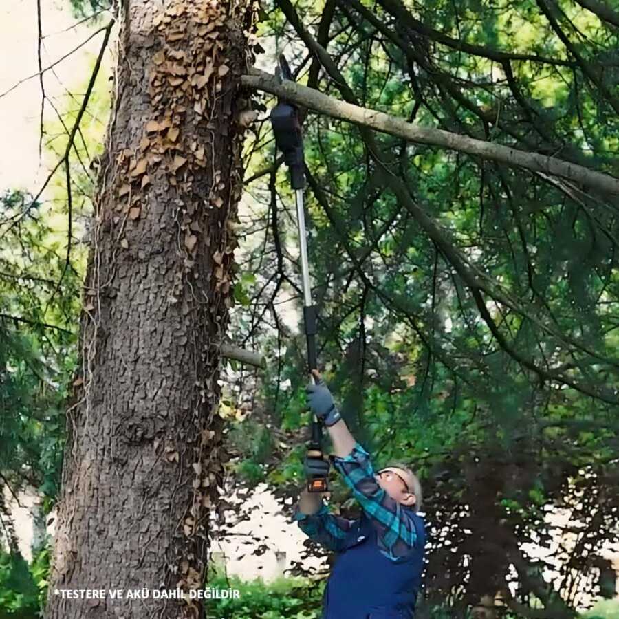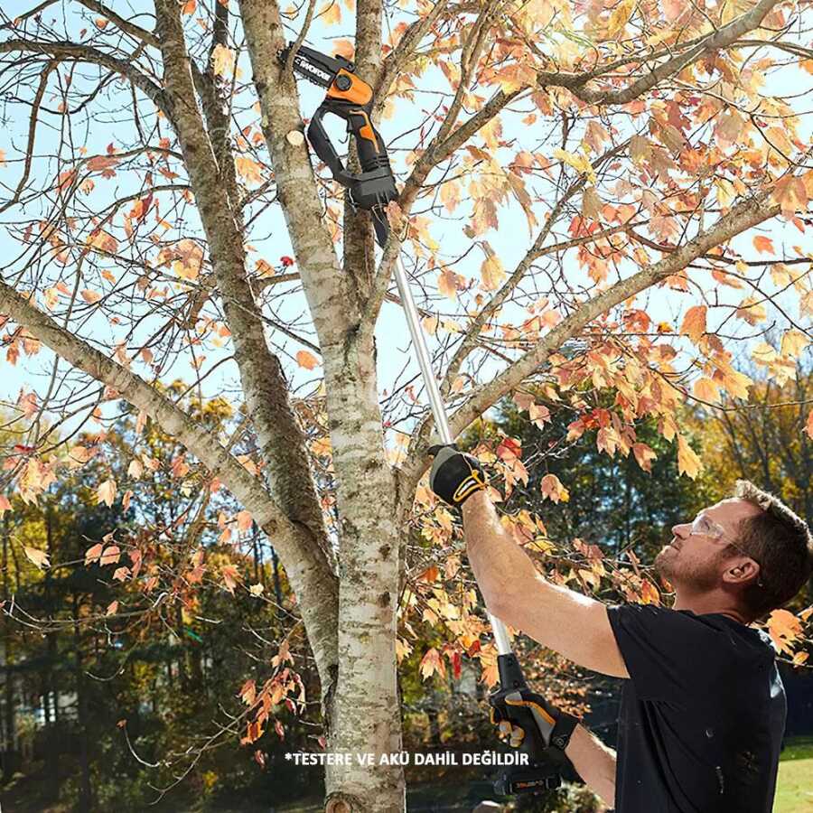 ·         İki bağlantı noktası ile toplam 125cm uzunluğa sahip sağlam Alüminyum şaft sayesinde WG324E 12cm zincirli testere ile uyumlu uzatma aparatı erişilmesi zor, yüksek ağaç dallarının budanmasında kolaylık sağlar.