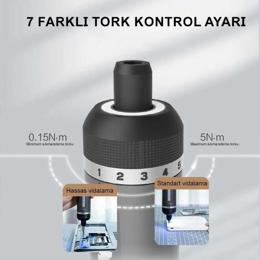 • Kademeli tork ayarı sayesinde 0,15Nm/5Nm ayarlanabilir Tork gücü.